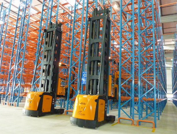 较高的立体货架通常配备堆垛起重机或叉车进行货物存取,从而提升库容利用率和作业效率