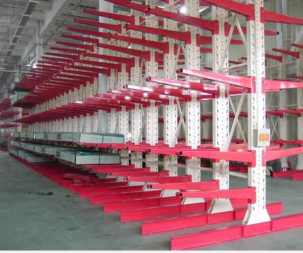 悬臂货架可以是单面或双面,悬臂式货架具有结构稳定,载重能力好、空间利用率高等特点。货物存取由叉车、行车或人工进行。